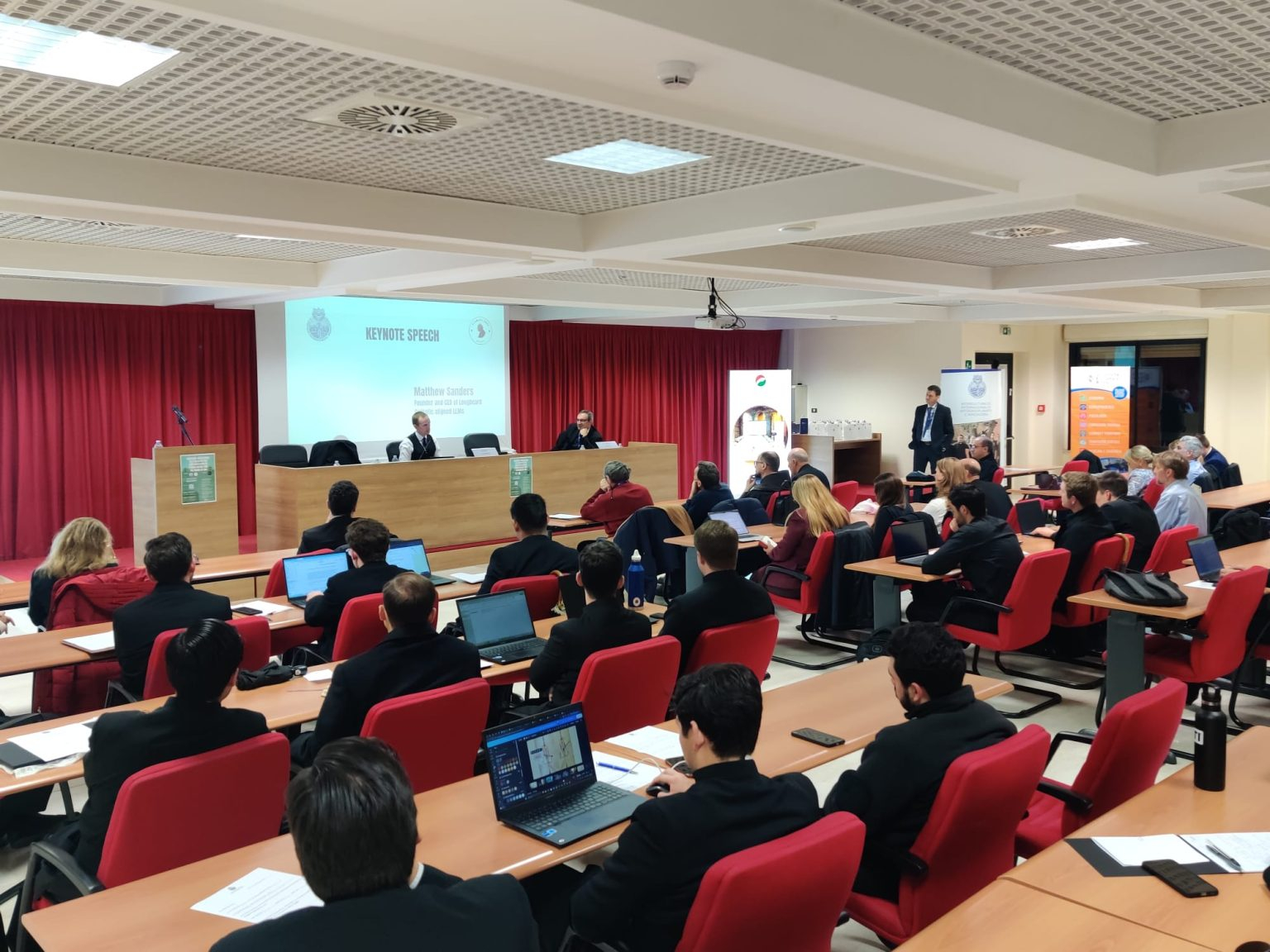 A konferencia nyitóelőadásában Matthew Sanders, egy fiatal katolikus tech-vállalkozó mutatta be a Magisterium AI nevű katolikus nyelvi modellel működő MI-platformot. A rendkívül megragadó gondolatmenet minden jelenlévőt arra ösztönzött, hogy gondoljuk újra, mit jelent embernek lenni és Isten képmására teremtett személyként tekinteni magunkra egy olyan világban, ahol a mesterséges intelligencia egyre intenzívebben lép be az életterünkbe. Az egész konferencia gondolati terméséről elmondható, hogy az világos útmutatót adott az MI emberközpontú integrációjához. Az előadók hozzájárulásai – a történeti távlatú bölcseleti elemzésektől a jogi-etikai figyelmeztetéseken át a konkrét cselekvési tervekig – mind azt szolgálták, hogy az MI-t az ember szolgálatába állítsuk. Ahhoz, hogy a mesterséges intelligencia ne torzítsa, hanem gazdagítsa az emberképet, szükség van mindazon értékek tudatosítására, amelyeket e konferencia középpontba állított: az emberi értelem méltóságára, a szabadságra, a közösség és hit jelentőségére.